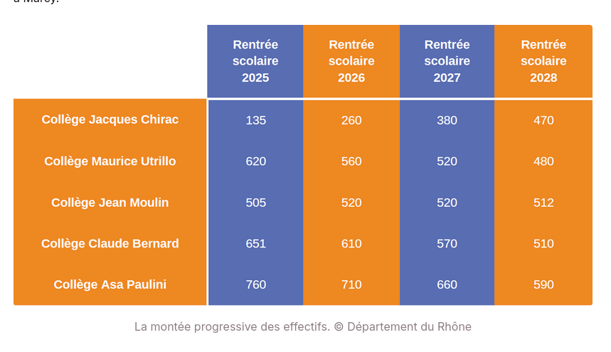 Le décompte de l’évolution des effectifs collégiens présentée par le département indique une baisse des effectifs pour les 5 prochaines années (cf annexe ci-dessous) : le collectif « des collèges qui respirent » l’avait annoncé et avait également suggéré un report pour une meilleure localisation : avec un collège de plus sur le tènement d’un autre, les collégiens du territoire n’ont pas gagné d’espace supplémentaire, le rapprochement possible avec une nouvelle localisation ne s’est pas fait.
