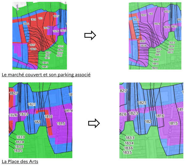 Ci-dessous, exemple de passage de zone rouge à zone violette pour Villefranche : la commune tient à rendre « évolutive » une zone à aléas inondation très fort : intentions louables !