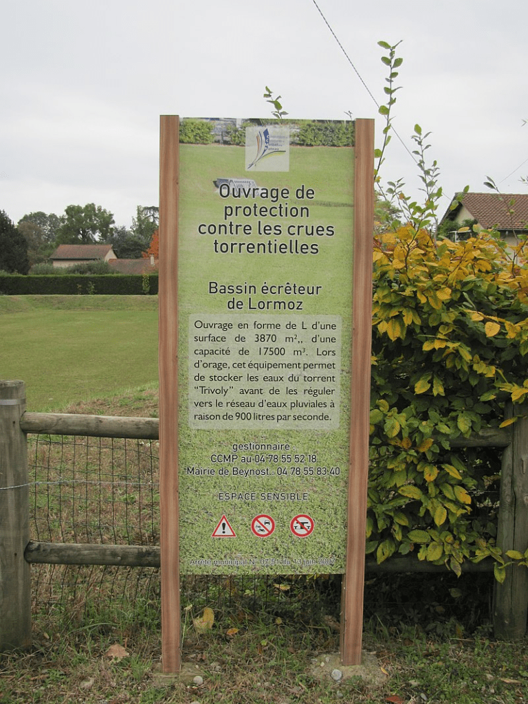 La réalisation en prévention d’inondations, d’ouvrages permettant l’expansion des eaux de crues dans des champs bordants le Morgon et 3 de ses affluents (ou sous-affluents) (Galoche, Merloux, Pouilly) – et peut-être sur le Nizerand -, dans leurs parties amont avant (ou entre) les zones urbaines, préconisation de l’organisme « Rivières du Beaujolais » ne figurent pas explicitement dans le PPRNi (ni dans le PLUIh de l’Agglo. Villefranche).