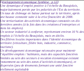 De la part des rédacteurs du diagnostic, attractivité et chômage contenu suffit à le rendre non déplorable. Dans les encarts des quatre parties du diagnostic nommées « les « enjeux du territoire Beaujolais », les verbes « Accompagner, Améliorer, Prendre en compte, Poursuivre, Veiller, Encourager » me semble en fort décalage pour modifier les trajectoires en cours du territoire.