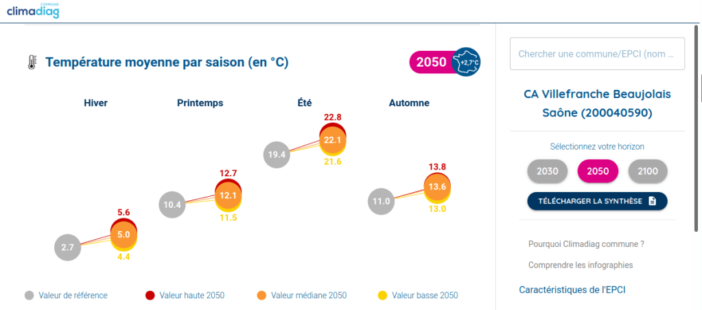 Le point principal du Schéma de Cohérence Territorial du syndicat mixte Beaujolais mis à enquête publique jusqu’au 19 décembre 2024 est la mise en avant du changement climatique – un chapitre « vulnérabilité climatique » avec 4 sous-chapitres du dossier d’évaluation environnemental, et son impact considérable inéluctable sur le territoire.
