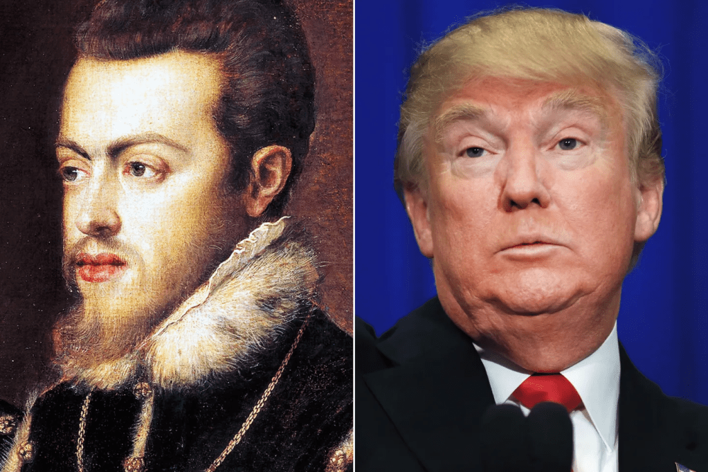 Moi, Philippe II, le dirigeant le plus puissant de mon temps, j’ai regardé, le plus excellent Seňor Trump, les malheurs qui affligent votre nation, pas différents de ceux auxquels j’ai été confronté, comme l’ont fait mon père, Carlos V, et mon fils, Philip III, sur notre propre terre. Le déclin économique, les pandémies de pauvres à la recherche de déjeuners gratuits, le christianisme assiégé de déviantes et de femmes laxistes, les valeurs traditionnelles minées par les intellectuels étrangers, les ennemis éloignés vous défient sans cesse à l’étranger pendant que, chez eux, les musulmans terroristes prétendent être des citoyens pacifiques – des troubles que nous avons résolus en notre temps avec des remèdes qui pourraient s’avérer bénéfiques pour votre propre avenir.